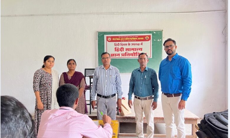 खामगाव :- स्थानिक विदर्भ शिक्षण प्रसारक मंडळ द्वारा संचालित गो. से महाविद्यालय, खामगाव येथे आज हिंदी विभागाद्वारे दरवर्षीप्रमाणे घेण्यात येणारी हिंदी सामान्य ज्ञान स्पर्धा आज दिनांक रोजी13/09/2025 रोजी घेण्यात आली यामध्ये हिंदी विषयासी संबंधित प्रश्न व पुरस्कार इ.प्रश्नांचा समावेश होता यामध्ये महाविद्यालयातील अनेक विद्यार्थ्यांनी सहभाग घेतला. हिंदी विभागाद्वारे दरवर्षीप्रमाणे हिंदी दिवस सोबतच हिंदी पखवाडा यांचे आयोजन केल्या जाते त्यामध्ये हिंदी सामान्य ज्ञान स्पर्धा, हिंदी निबंध स्पर्धा ,हिंदी, काव्य पाठ व इतर कार्यक्रमाचा सहभाग कार्यक्रम घेतल्या जाते ह्या कार्यक्रमांमध्ये महत्त्वपूर्ण भूमिका अदा करणारे आमचे प्राचार्य डॉक्टर धनंजय तळवणकर व विदर्भ शिक्षक प्रसारक मंडळाचे अध्यक्ष माननीय श्री डॉक्टर सुभाषजी बोबडे व सचिव माननीय श्री डॉक्टर प्रशांत नरेंद्रजी बोबडे मार्गदर्शनाखाली ही स्पर्धा परीक्षा घेण्यात आली. या कार्यक्रमाचे आयोजन हिंदी विभागा ने केले. विभागाध्यक्ष डॉ. शेखर खडसे व डॉ. भारत जवंजाळ तसेच प्रा.सुभाष दिनकर वाघ व, डा.अनिताकौर कामठेकर. पूजा टेकाळे प्रा. विक्रम मोरे, प्रा. डॉ. मोहम्मद रागिब देशमुख, डॉ. व्ही .एम. देशमुख प्रा. डी. एस. भुतेकर .प्रा. देवानंद आढाव, प्रा. अकोटकर, प्रा.टकले, व समस्त प्राध्यापक वर्गांचा समावेश होता. अशी माहिती एका प्रसिद्धी पत्रकाद्वारे प्रा. डॉ. मोहम्मद रागिब देशमुख यांनी दिली आहे.