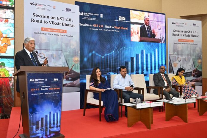 वर्ल्ड ट्रेड सेंटर (WTC) आणि ऑल इंडिया असोसिएशन ऑफ इंडस्ट्रीज (AIAI) यांच्या संयुक्त विद्यमाने आयोजित करण्यात आलेल्या “GST 2.0 : विकसित भारताचा मार्ग” या विशेष सत्रात ते बोलत होते. या कार्यक्रमात राज्य कर विभागाचे आयुक्त आशीष शर्मा, WTC व AIAI अध्यक्ष विजय कलंत्री, TCN Global च्या अनिंदिता चॅटर्जी, करतज्ज्ञ रागिनी तुलसियन यांच्यासह विविध मान्यवर उपस्थित होते.