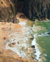 तीन बाजूंनी डोंगरकड्यांनी वेढलेला शांत किनारा
