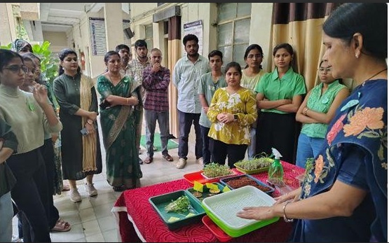 रिसोर्स पर्सन डॉ. सुचिता खोडके यांनी मायक्रोग्रीन्सचे पोषणमूल्य, विविध प्रकार, त्यांचे औषधी गुणधर्म तसेच आहारात समावेश करण्याचे फायदे सांगून सहजपणे उपलब्ध होणा-या बिया वापरून मायक्रोग्रीन्स कसे तयार करावे याबाबत माहिती दिली. त्याचबरोबर त्यांनी प्रात्यक्षिकाद्वारे बी पेरणी, संवर्धन व कापणीची पध्दत विद्याथ्र्यांना समजावून सांगितली.