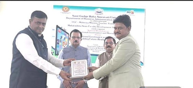 संत गाडगे बाबा अमरावती विद्यापीठाच्या व्यवसाय प्रशासन आणि व्यवस्थापन विभागामार्फत यूजीसी-मलवीय मिशन टीचर ट्रेनिंग सेंटर व महाराष्ट्र स्टेट फॅकल्टी डेव्हलपमेंट अकॅडमी, पुणे यांच्या संयुक्त विद्यमाने आयोजित संस्थात्मक शासन व व्यवस्थापन या राष्ट्रीय कार्यशाळेचा यशस्वीरित्या समारोप झाला. अध्यक्षस्थानी प्र-कुलगुरू डॉ. महेंद्र ढोरे, प्रमुख अतिथी म्हणून कुलसचिव डॉ. अविनाश असनारे, जी. एच. रायसोनी विद्यापीठाचे कुलगुरू डॉ. विनायक देशपांडे उपस्थित होते.