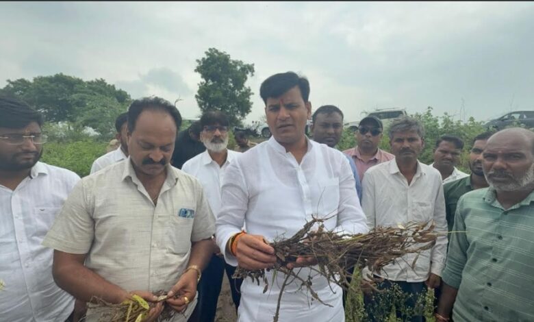 आ. रवी राणा थेट शेतकऱ्यांच्या बांधावर; अतिवृष्टीग्रस्त पिकांची केली पाहणी