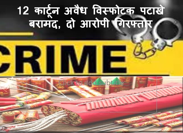 12 कार्टून अवैध विस्फोटक पटाखे बरामद, दो आरोपी गिरफ्तार