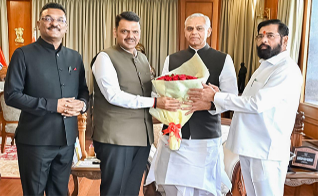 मुख्यमंत्री देवेंद्र फडणवीस यांनी आज राजभवन, मुंबई येथे राज्यपाल आचार्य देवव्रत यांची सदिच्छा भेट घेतली. या भेटीदरम्यान दोन्ही नेत्यांमध्ये सौहार्दपूर्ण संवाद झाला आणि राज्यातील सध्याच्या राजकीय तसेच सामाजिक परिस्थितीवर चर्चा झाली. मुख्यमंत्री फडणवीस यांनी राज्यपालांना दीपावलीच्या शुभेच्छा दिल्या तसेच नागरिकांच्या सुरक्षितता, सामाजिक ऐक्य आणि राज्याच्या विकासासाठी घेण्यात येणाऱ्या उपाययोजनांबाबत माहिती दिली. यावेळी त्यांनी परस्पर सहयोग आणि सहकार्य वाढविण्याच्या गरजेवरही भर दिला. या भेटीदरम्यान वातावरण अत्यंत मैत्रीपूर्ण आणि सुसंवादपूर्ण राहिले, ज्यातून नेतृत्वातील संवाद आणि पारदर्शकतेचा सकारात्मक संदेश मिळाला.