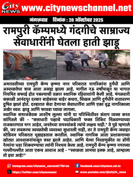 Home/Latest News/रामपुरी कॅम्पमध्ये गंदगीचे साम्राज्य सेवाधारींनी घेतला हाती झाडू Latest NewsMaharashtra रामपुरी कॅम्पमध्ये गंदगीचे साम्राज्य सेवाधारींनी घेतला हाती झाडू city24 Send an email October 28, 2025 4 Less than a minute Share Facebook X LinkedIn WhatsApp Share via Email Post Views: 16 Tagsamravati Latest News maharashtra city24 Send an email October 28, 2025 4 Less than a minute Share Facebook X LinkedIn WhatsApp Share via Email Show More Share Facebook X LinkedIn Pinterest WhatsApp Share via Email