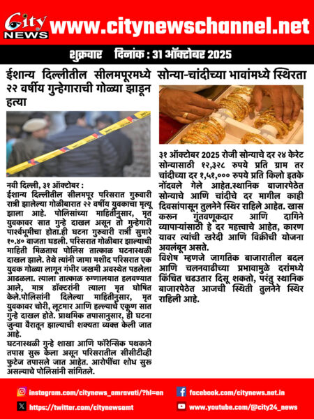 Home/Latest News/ईशान्य दिल्लीतील सीलमपूरमध्ये २२ वर्षीय गुन्हेगाराची गोळ्या झाडून हत्या Latest News ईशान्य दिल्लीतील सीलमपूरमध्ये २२ वर्षीय गुन्हेगाराची गोळ्या झाडून हत्या city24 Send an email October 31, 2025 2 Less than a minute Share Facebook X LinkedIn WhatsApp Share via Email Post Views: 16 TagsLatest News city24 Send an email October 31, 2025 2 Less than a minute Share Facebook X LinkedIn WhatsApp Share via Email Show More Share Facebook X LinkedIn Pinterest WhatsApp Share via Email