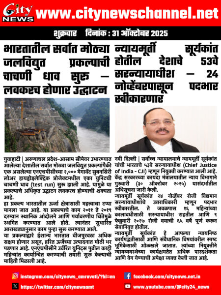 Home/Latest News/न्यायमूर्ती सूर्यकांत होतील देशाचे ५३वे सरन्यायाधीश — २४ नोव्हेंबरपासून पदभार स्वीकारणार Latest News न्यायमूर्ती सूर्यकांत होतील देशाचे ५३वे सरन्यायाधीश — २४ नोव्हेंबरपासून पदभार स्वीकारणार city24 Send an email October 31, 2025 5 Less than a minute Share Facebook X LinkedIn WhatsApp Share via Email Post Views: 14 TagsLatest News city24 Send an email October 31, 2025 5 Less than a minute Share Facebook X LinkedIn WhatsApp Share via Email Show More Share Facebook X LinkedIn Pinterest WhatsApp Share via Email