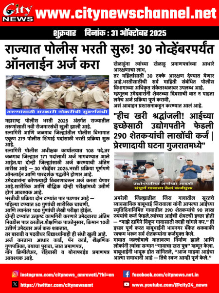 Home/Education News/राज्यात पोलीस भरती सुरू! 30 नोव्हेंबरपर्यंत ऑनलाईन अर्ज करा Education NewsLatest News राज्यात पोलीस भरती सुरू! 30 नोव्हेंबरपर्यंत ऑनलाईन अर्ज करा city24 Send an email October 31, 2025 0 Less than a minute Share Facebook X LinkedIn WhatsApp Share via Email Post Views: 14 TagsLatest News city24 Send an email October 31, 2025 0 Less than a minute Share Facebook X LinkedIn WhatsApp Share via Email Show More Share Facebook X LinkedIn Pinterest WhatsApp Share via Email