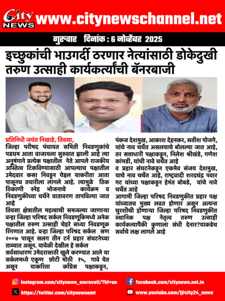 Home/Latest News/इच्छुकांची भाउगर्दी ठरणार नेत्यांसाठी डोकेदुखी तरुण उत्साही कार्यकर्त्यांची बॅनरबाजी Latest NewsMaharashtra इच्छुकांची भाउगर्दी ठरणार नेत्यांसाठी डोकेदुखी तरुण उत्साही कार्यकर्त्यांची बॅनरबाजी city24 Send an email November 6, 2025 5 Less than a minute Share Facebook X LinkedIn WhatsApp Share via Email Post Views: 18 TagsLatest News maharashtra city24 Send an email November 6, 2025 5 Less than a minute Share Facebook X LinkedIn WhatsApp Share via Email Show More Share Facebook X LinkedIn Pinterest WhatsApp Share via Email