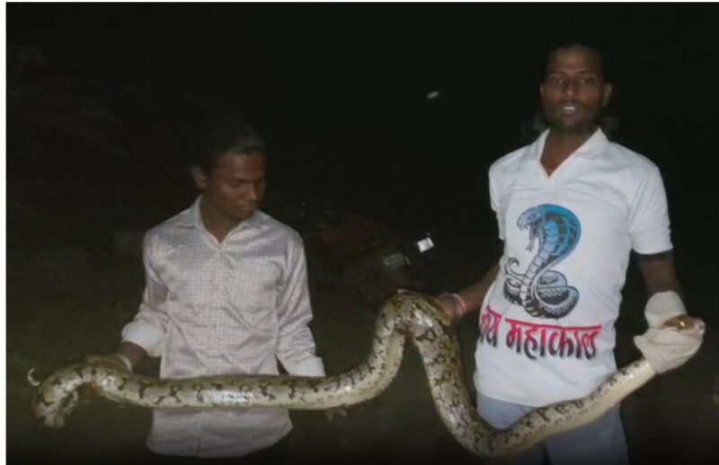 भातकुली तालुक्यातील दारापूर गावात रविवारी सायंकाळी तब्बल 10 फूट लांबीचा आणि सुमारे 9 किलो वजनाचा भला मोठा अजगर दिसल्याने गावात भीतीचे वातावरण निर्माण झाले. ग्रामस्थांनी तात्काळ माहिती सर्पमित्रांना दिली आणि अल्पावधीतच सर्पमित्र अजय हिवराळे आणि राहुल पांडे घटनास्थळी दाखल झाले. त्यांच्या धाडस आणि तत्परतेमुळे मोठा अनर्थ टळल्याचे ग्रामस्थांनी सांगितले.