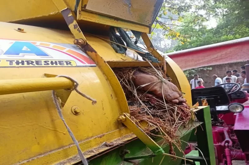 काम सुरू असतानाच अचानक मंगेश यांचा पाय घसरला आणि क्षणार्धात ते चालू अवस्थेतील थ्रेशर मशीनमध्ये अडकले.