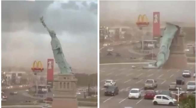 ब्राजील में तूफान का कहर: तेज आंधी और तूफान की चपेट में आकर गिरी ‘स्टैच्यू ऑफ लिबर्टी’ की 114 फीट ऊंची मूर्ति