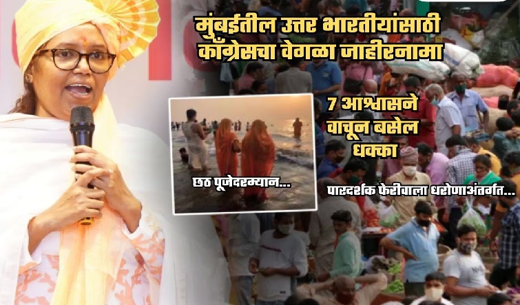उत्तर भारतीय समाजासाठी स्वतंत्र जाहीरनामा जाहीर करून काँग्रेसने मुंबईतील राजकारणात नवा मुद्दा उपस्थित केला असून, या घोषणेमुळे महापालिका निवडणुकीत उत्तर भारतीय मतदारांवर याचा नेमका किती प्रभाव पडतो, याकडे सर्वांचं लक्ष लागलं आहे.