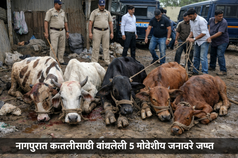 नागपुरात गोवंशीय जनावरांवर क्रूरता, कत्तलीसाठी बांधलेली जनावरे जप्त
