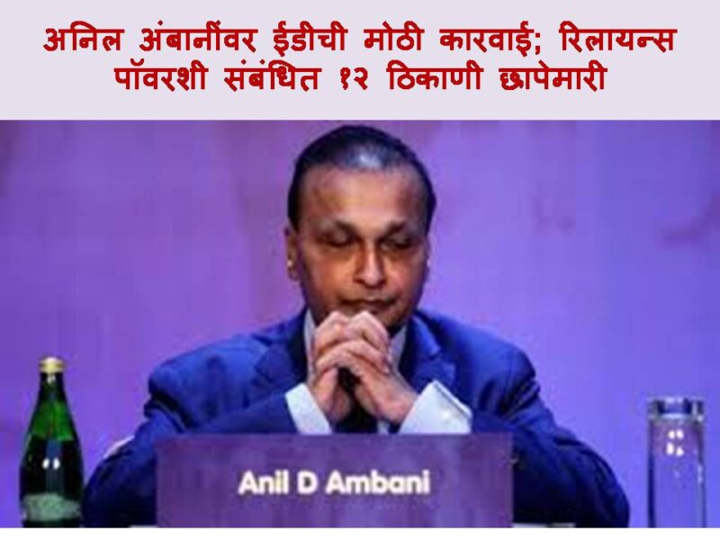 यापूर्वी फेब्रुवारी २०२६ मध्येही ईडीने मुंबईतील पाली हिल परिसरातील अनिल अंबानी यांच्या ‘अॅबोड’ या निवासस्थानी कारवाई केली होती. त्यानंतर आता कंपनीशी संबंधित १२ ठिकाणी पुन्हा छापेमारी करण्यात आली आहे.