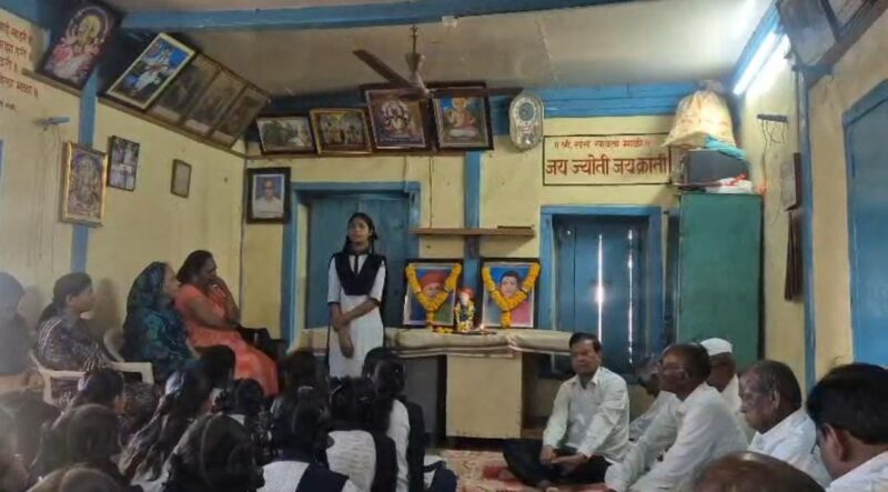 कार्यक्रमाची सुरुवात Jyotirao Phule आणि सावित्रीबाई फुले यांच्या प्रतिमेचे पूजन करून करण्यात आली. यावेळी मुख्याध्यापिका सौ. मधुमती महाजन, माजी सरपंच वंदना पाटील, किर्ती चौधरी आणि शालेय विद्यार्थिनी यांच्या हस्ते प्रतिमेला पुष्पहार अर्पण करण्यात आला.