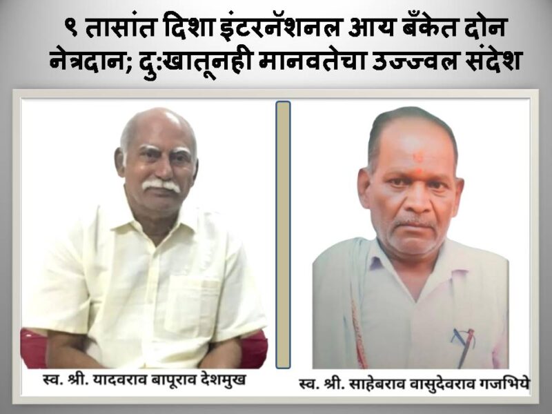 ९ तासांत दिशा इंटरनॅशनल आय बँकेत दोन नेत्रदान; दु:खातूनही मानवतेचा उज्ज्वल संदेश