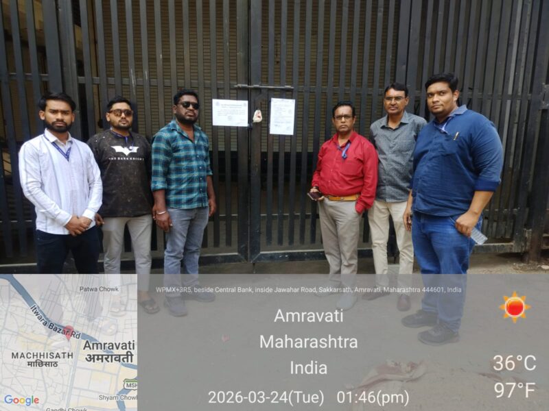 अमरावती, दि. २४ मार्च २०२६ (मंगळवार) – अमरावती महानगरपालिकाने थकबाकीदारांवर कडक कारवाई करत झोन क्रमांक ५ मधील भाजीबाजार परिसरातील जवाहर गेट येथे मोठी मालमत्ता सीलिंग केली. वार्ड क्रमांक E-4 मधील मालमत्ता क्रमांक १९६४/०१ ते ९१ या मालमत्तेवर ₹९,३१,७३९ इतकी मालमत्ता कराची थकबाकी असल्याने ही कारवाई करण्यात आली.
