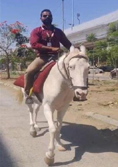 पेट्रोल टंचाईत ‘देसी जुगाड’; बाईक सोडून घोड्यावरून ऑफिसला पोहोचला बँक कर्मचारी