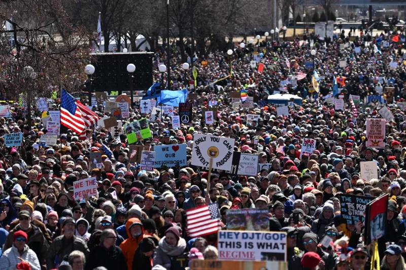 अमेरिकेत ‘नो किंग्स डे’ निमित्त राष्ट्राध्यक्ष डोनाल्ड ट्रम्प यांच्या विरोधात मोठ्या प्रमाणावर आंदोलन उभारण्यात आले. देशभरात हजारो नागरिकांनी रस्त्यावर उतरून ट्रम्प यांच्या धोरणांविरोधात संताप व्यक्त केला.