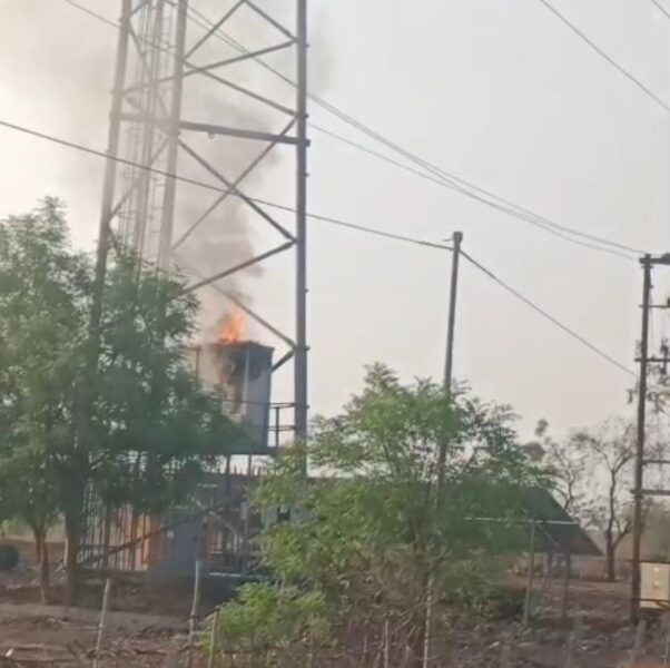 उमरदरी गावात मोबाईल टॉवरला आग; नेटवर्क सेवा ठप्प, नागरिकांमध्ये भीतीचे वातावरण