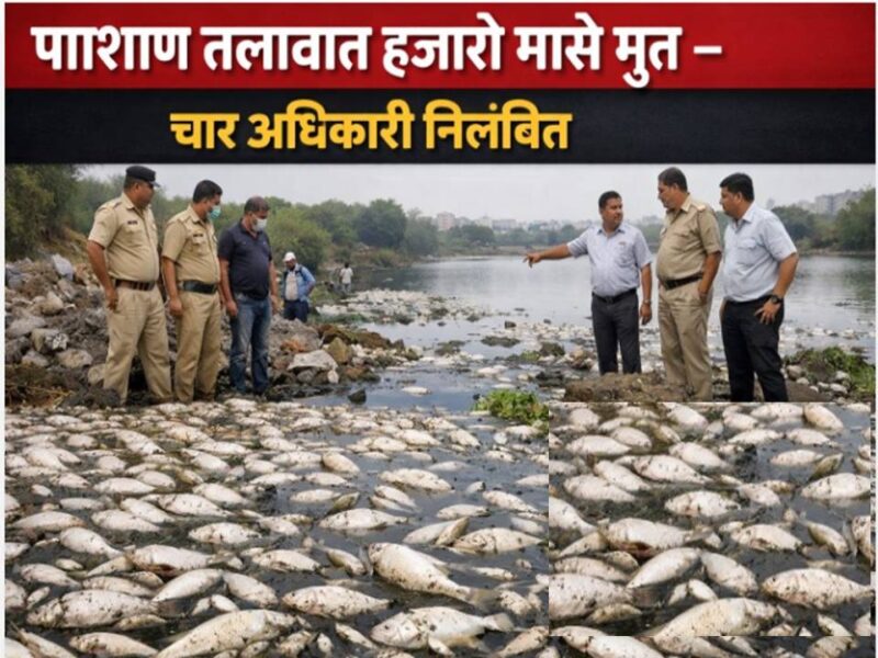 पुण्यातील निसर्गरम्य पाषाण तलाव येथे मोठ्या प्रमाणावर मासे आणि इतर जलचरांचा मृत्यू झाल्याने मोठी खळबळ उडाली आहे. या गंभीर प्रकाराची दखल घेत पुणे महानगरपालिका प्रशासनाने तातडीने कठोर कारवाई करत चार अधिकाऱ्यांना निलंबित केले आहे.