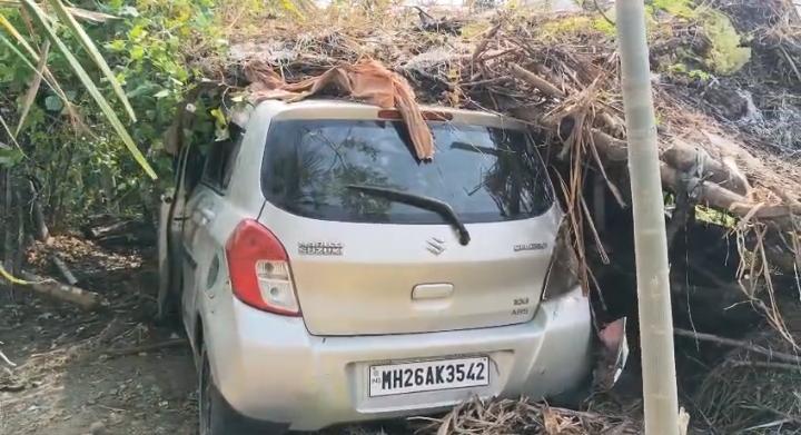 भरधाव कार थेट शेतातील आखाड्यात घुसली; झाडाखाली बसलेल्या महिलेचा जीव धोक्यात