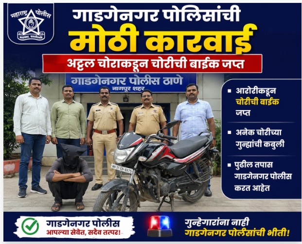गाडगेनगर पोलिसांची मोठी कारवाई, अट्टल चोराकडून चोरीची बाइक जप्त