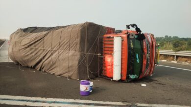 समृद्धी महामार्गावर ट्रक उलटला, चालक किरकोळ जखमी