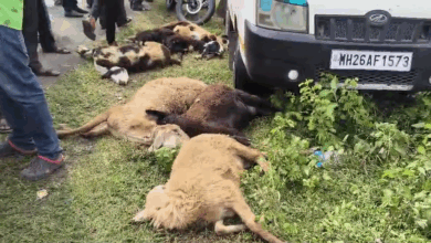 नांदेड भोकर रस्त्यावर अपघात, 20 मेंढ्यांना जागेवरच चिरडले