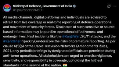 रक्षा मंत्रालय ने सभी मीडिया चैनलों, डिजिटल प्लेटफॉर्म और व्यक्तियों को सख्त एडवाइज़री जारी कर कहा कि रक्षा अभियानों और…