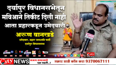 दर्यापूर विधानसभेतून मविआने तिकीट दिली नाही आता प्रहारकडून उम्मेदवारी – अरुण वानखडे