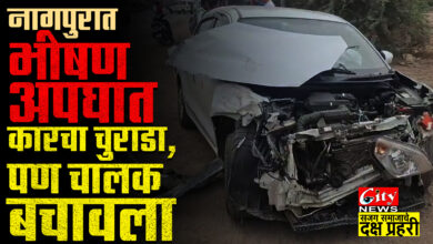 Accident News : नागपुरात भीषण अपघात! चार वाहनांची साखळी धडक – कारचा चुराडा, चालक बचावला!