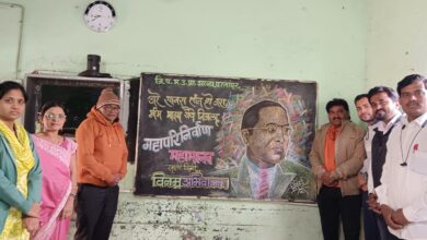 जि. प. शाळेत महापरिनिर्वाण दिन उत्साहात; शिक्षकाने साकारले डॉ. आंबेडकरांचे अद्भुत खडूचित्र