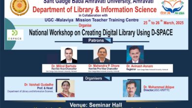 अमरावती :- संत गाडगे बाबा अमरावती विद्यापीठाचा ग्रंथालय आणि माहितीशास्त्र विभाग आणि यूजीसी – मालवीय मिशन शिक्षक प्रशिक्षण केंद्र यांच्या…